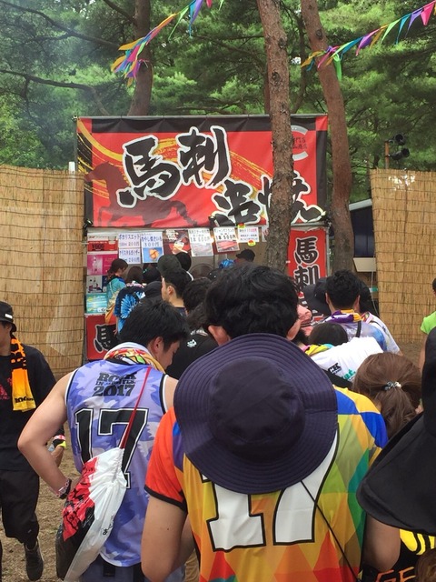 おかげさまで馬刺ステーキ肉串、馬ジャンボフランク大好評です!写真ではお客様の顔は見えないのですが、僕らはテントの中で焼いてますから全てのお客様の顔を見ることができます。お客様みんな笑顔なんです!本当にみんないい顔されてます!一日の来場者68500人みんな本当に楽しんでいらっしゃいます!国内最大のロックフェスは伊達ではありません!アーティストの、主催者様の、そしてお客様の圧倒的パフォーマンス、本当に凄いです!