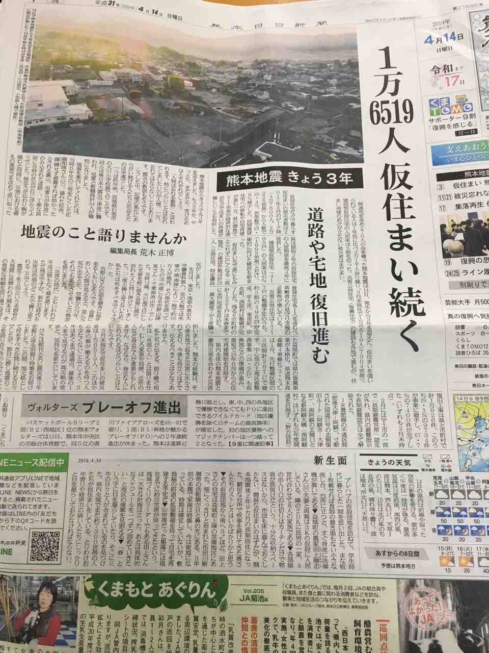 熊本地震から3年が経ちました。
