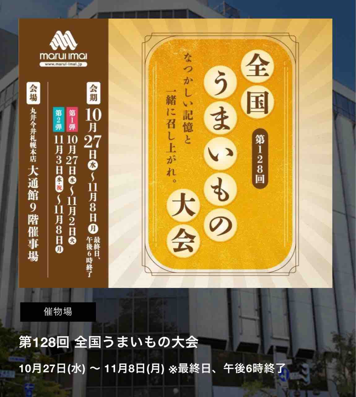 丸井今井札幌本店 2021年10月26日 「全国うまいもの大会」10/27(水)〜11/8(月)にて開催です!1年ぶりに札幌へやってきました!寒さは今のところ阿蘇の勝ち、偏頭痛は札幌の勝ち!😅 カテゴリなしの他の記事 < 前の記事次の記事 >